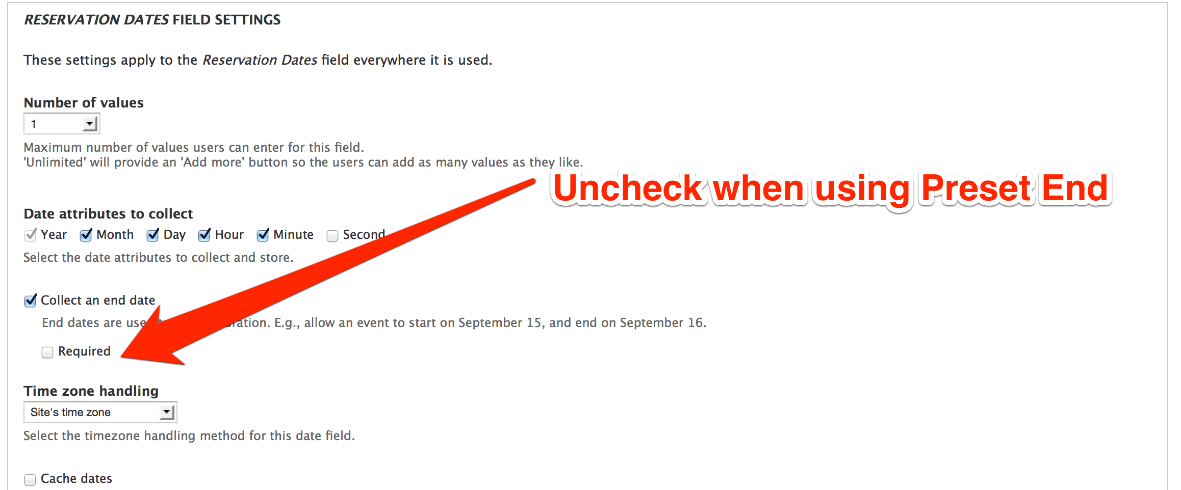 To configure Reservations Preset End, you must unlock the Reservations Date field using the Advanced settings in the Admin Configuration.